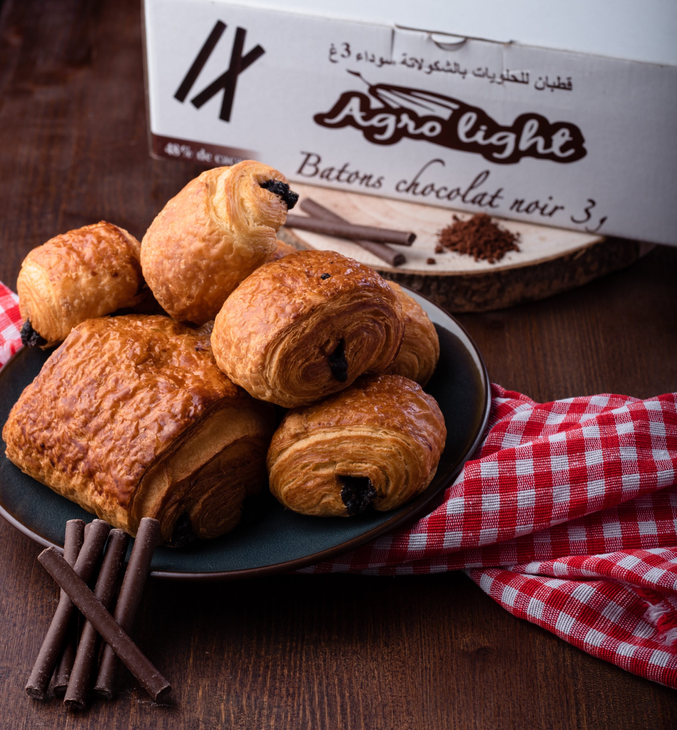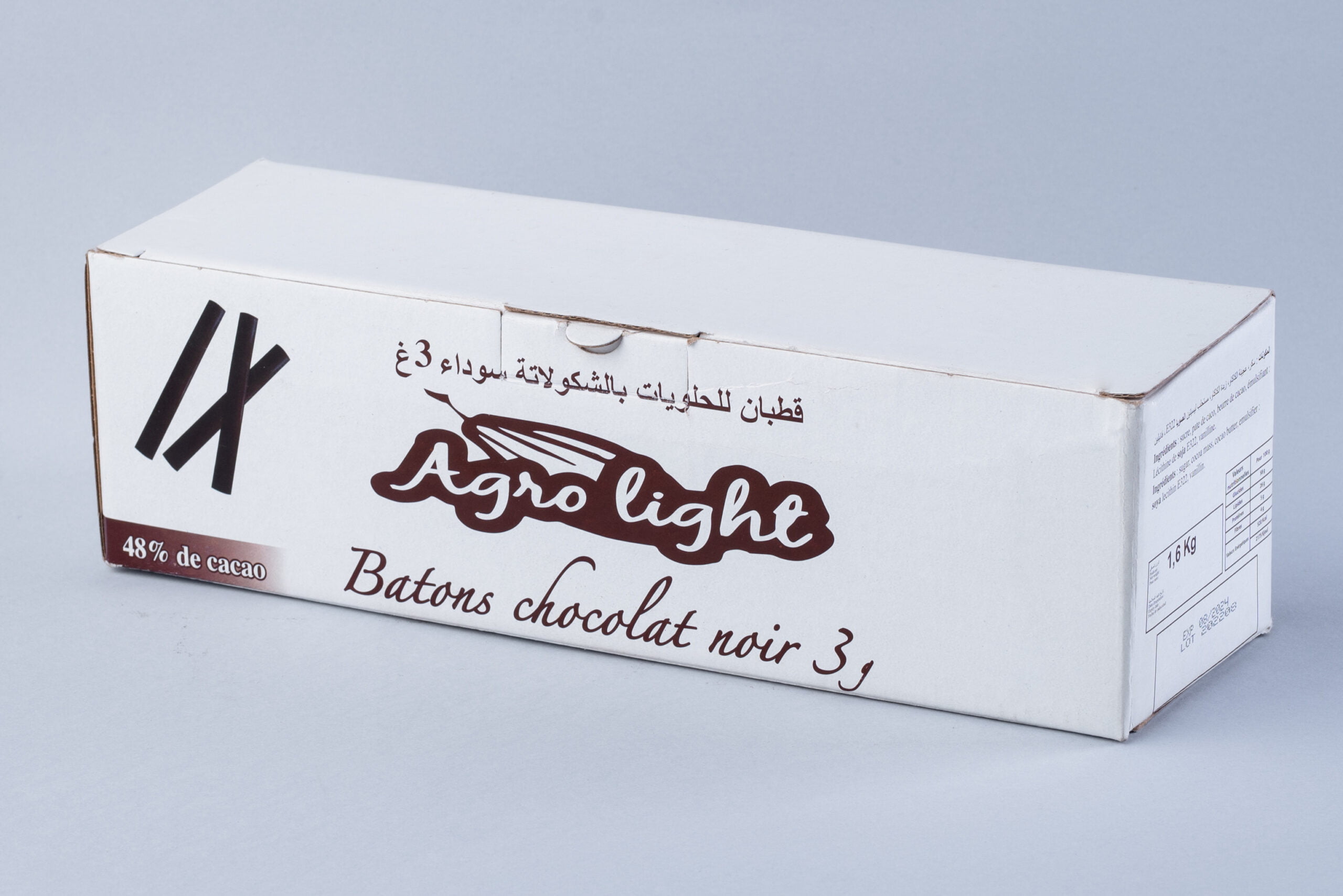 Bâtons de chocolat Agro Light avec 48% de cacao, idéal pour vos délicieux pains au chocolat.